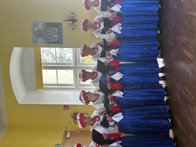 Po prezentacji zespołu, każda z naszych grup, od najmłodszych do najstarszych (Krasnale, Smerfy, Motylki, Sówki, Gumisie) zaprezentowała piosenki oraz tańce wychwalające naszą Ojczyznę.