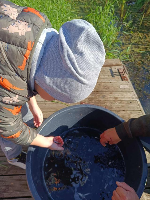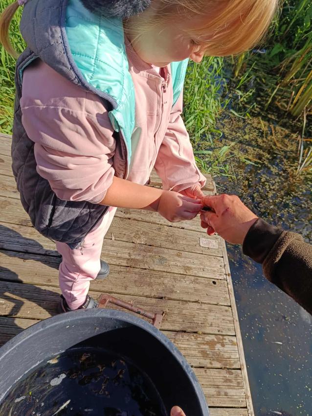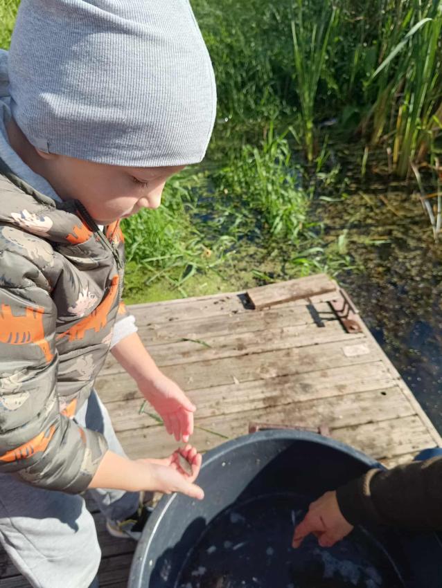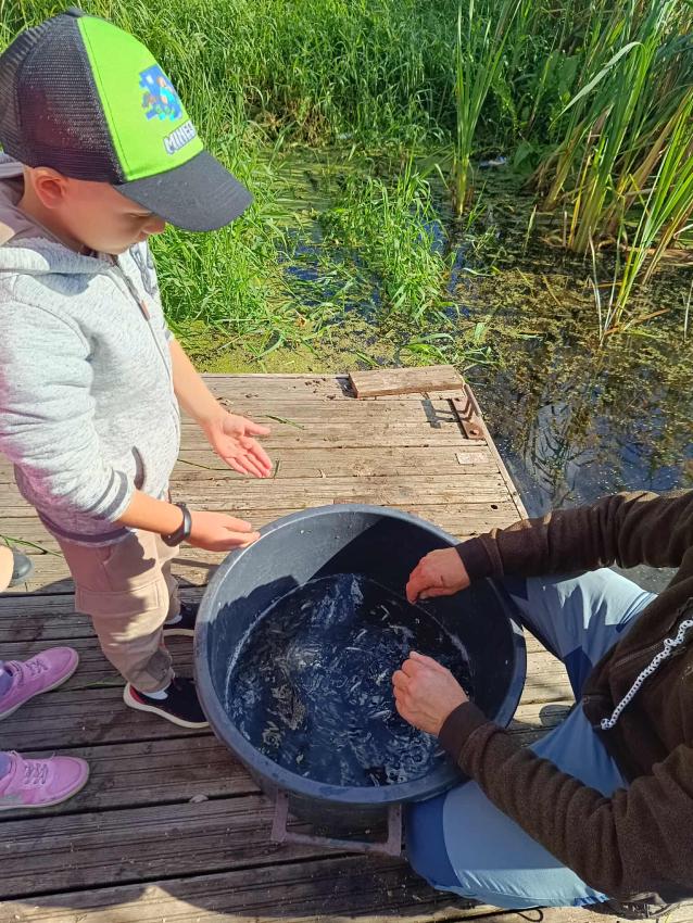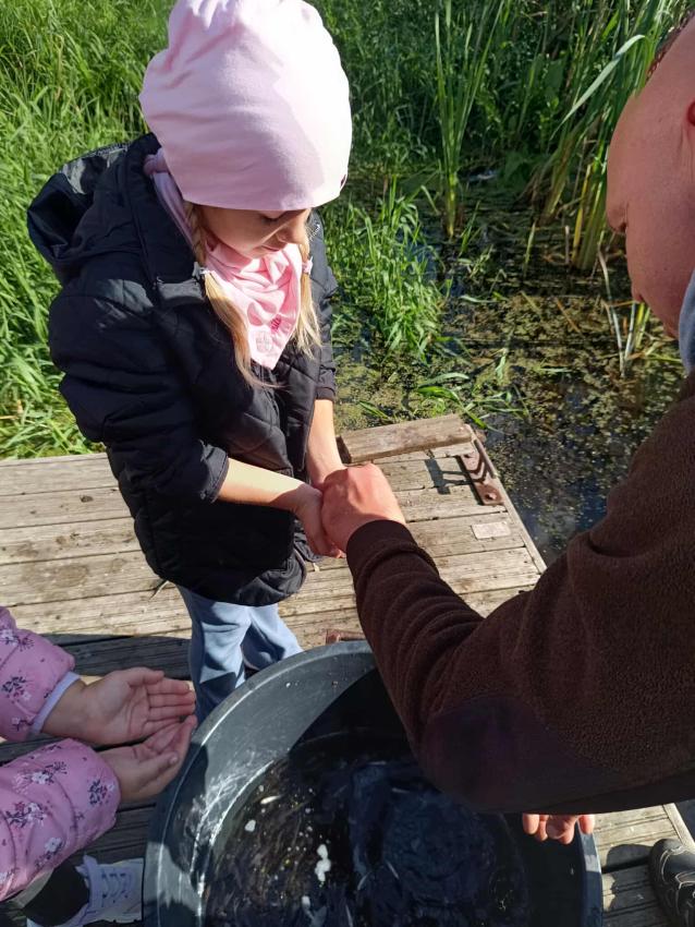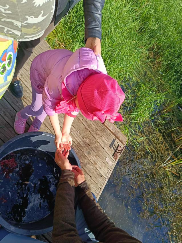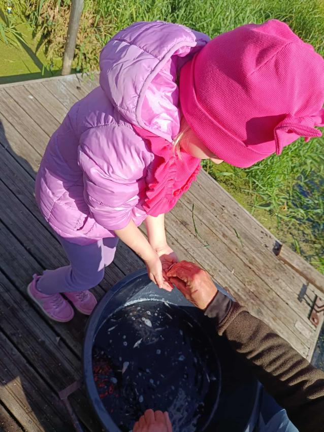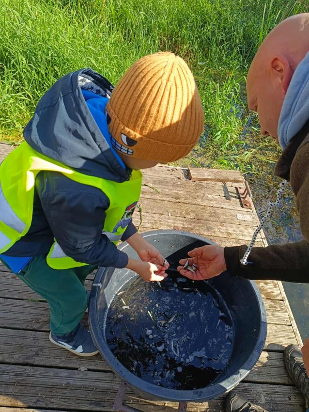 Dzięki uprzejmości „Polskiego Związku Wędkarskiego” – okręg w Szczecinie oraz pani Annie Orłowskej-Szczerba dnia 02.10.2025r. nasze przedszkolaki z grupy „Biedronek” po raz 2 wzięły udział w zarybianiu rzeki Regi. .Każde z uczestniczących w wydarzeniu dzieci wpuściło do wody małą centrę, przyczyniając się tym samym do biologicznej regeneracji rzeki.