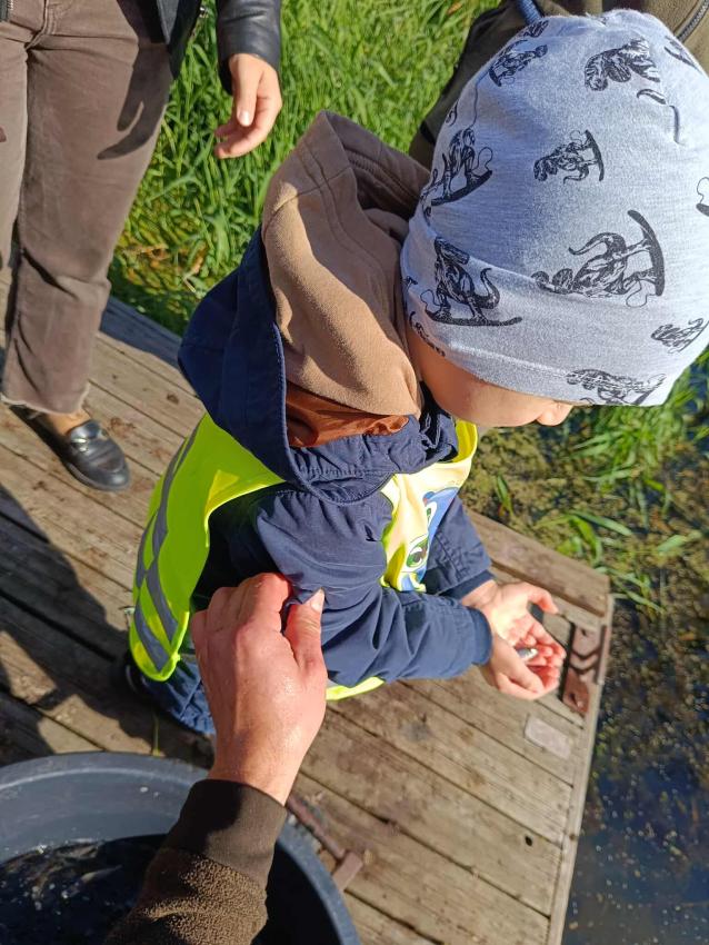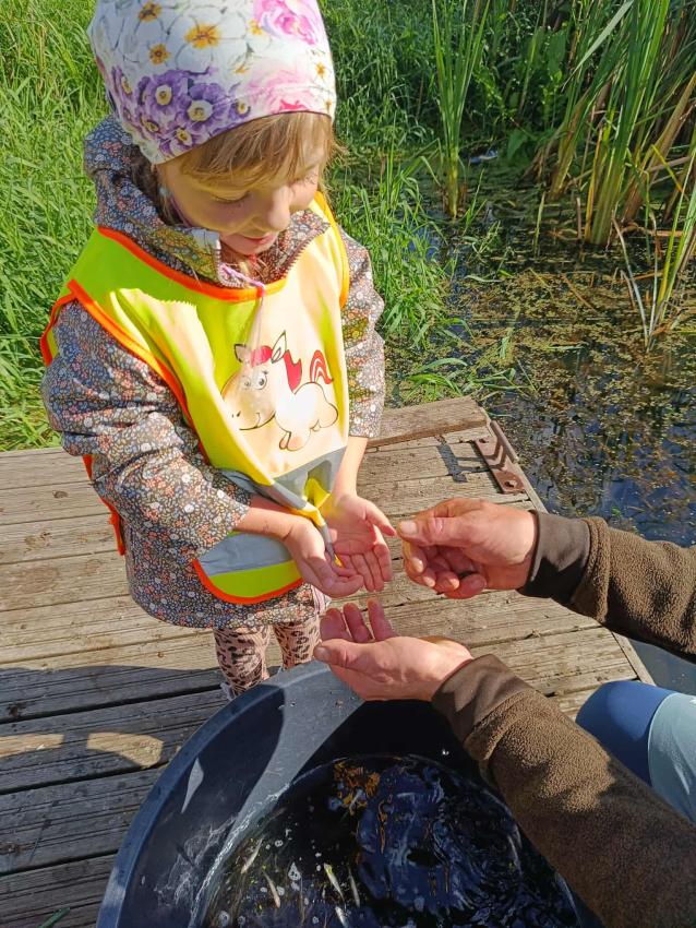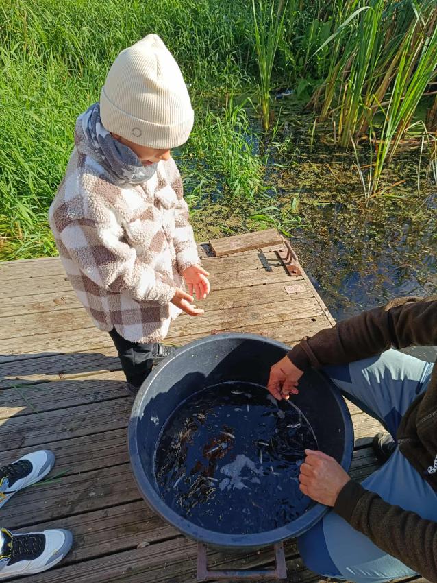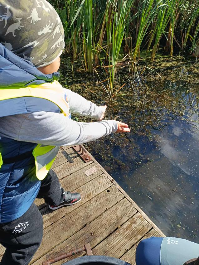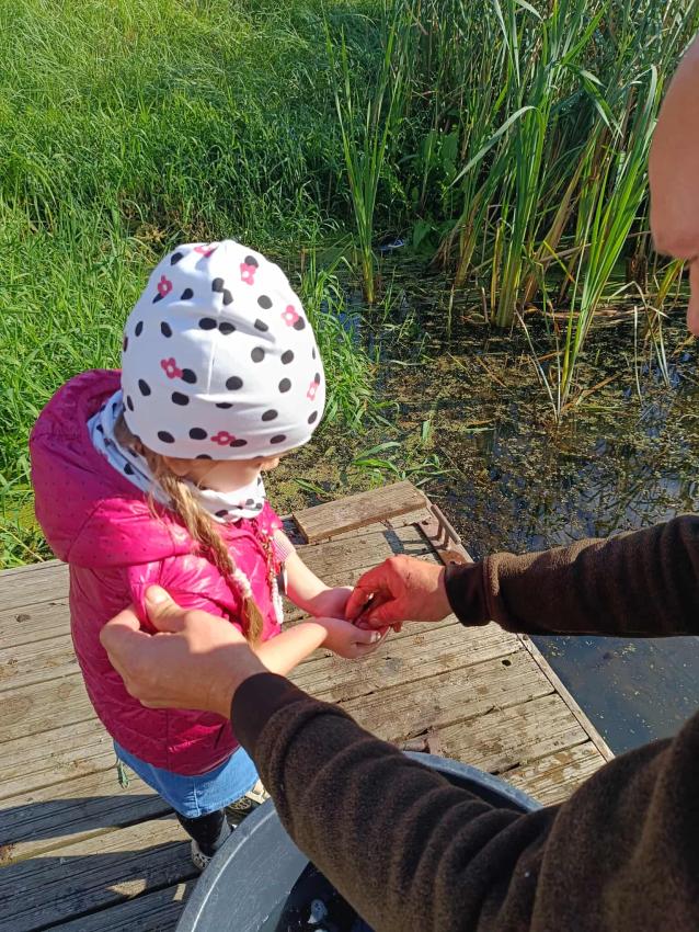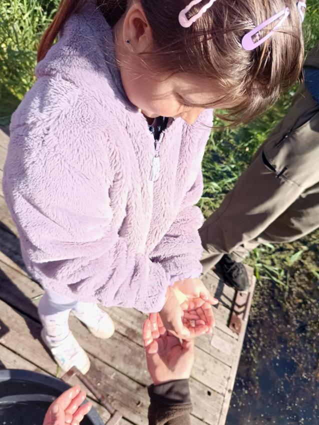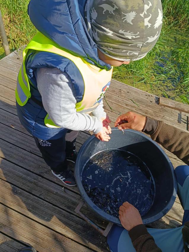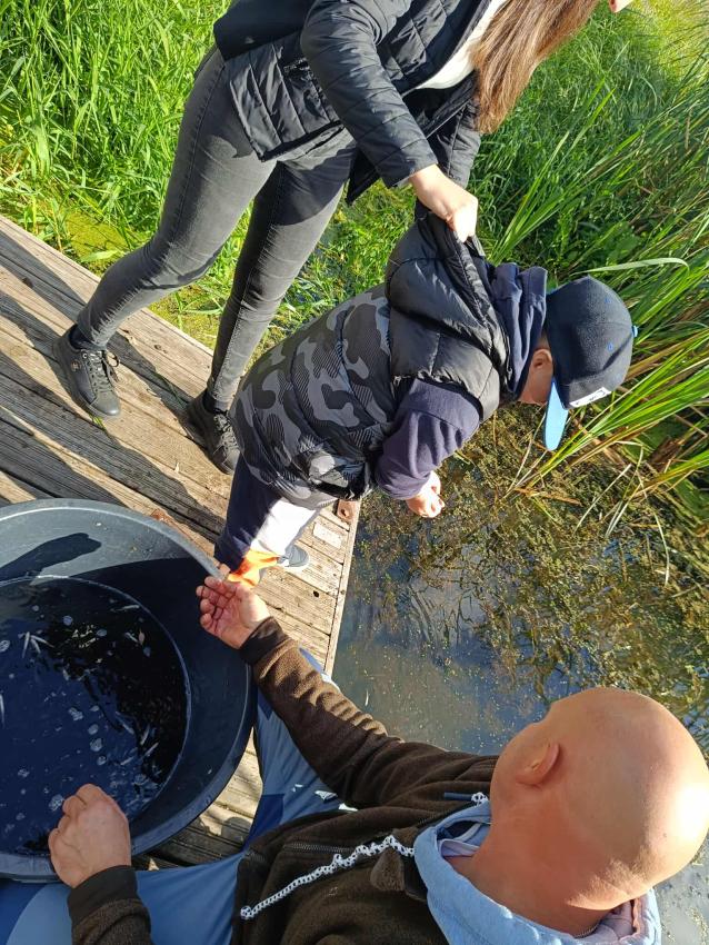 Dzięki uprzejmości „Polskiego Związku Wędkarskiego” – okręg w Szczecinie oraz pani Annie Orłowskej-Szczerba dnia 02.10.2025r. nasze przedszkolaki z grupy „Biedronek” po raz 2 wzięły udział w zarybianiu rzeki Regi. .Każde z uczestniczących w wydarzeniu dzieci wpuściło do wody małą centrę, przyczyniając się tym samym do biologicznej regeneracji rzeki.