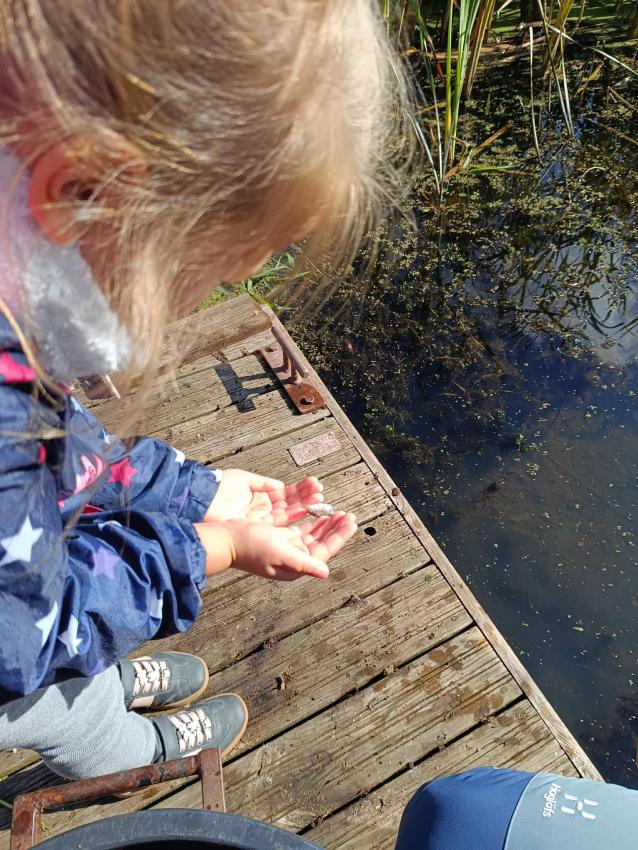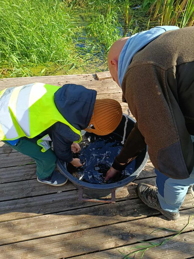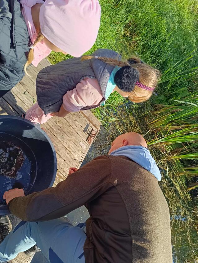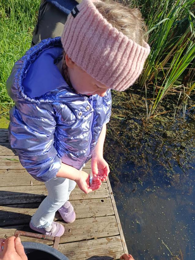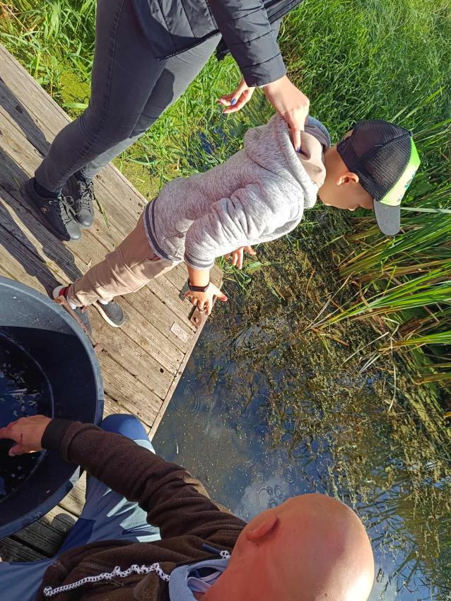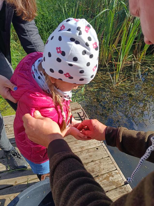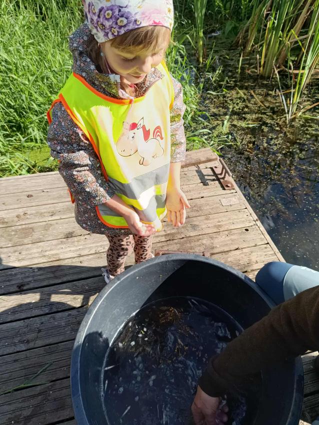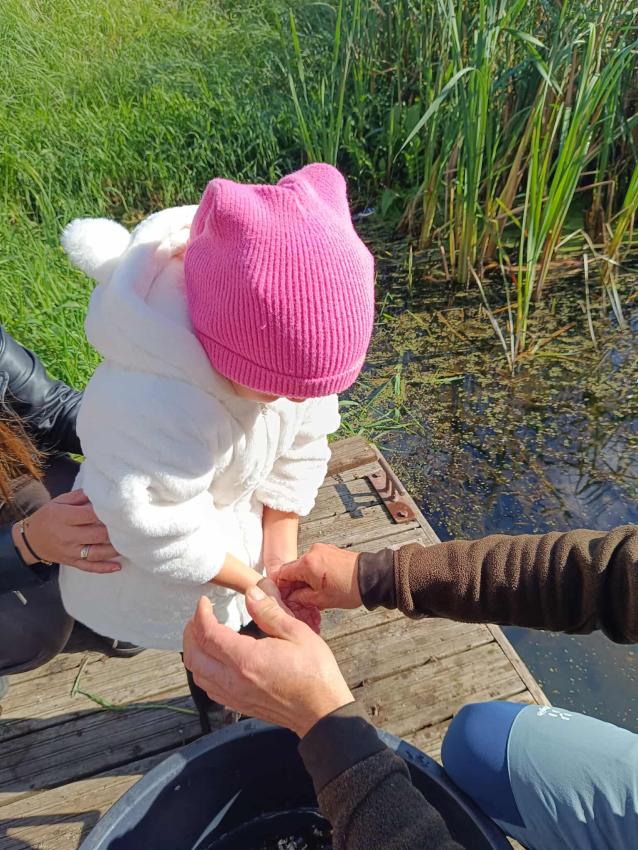 Dzięki uprzejmości „Polskiego Związku Wędkarskiego” – okręg w Szczecinie oraz pani Annie Orłowskej-Szczerba dnia 02.10.2025r. nasze przedszkolaki z grupy „Biedronek” po raz 2 wzięły udział w zarybianiu rzeki Regi. .Każde z uczestniczących w wydarzeniu dzieci wpuściło do wody małą centrę, przyczyniając się tym samym do biologicznej regeneracji rzeki.