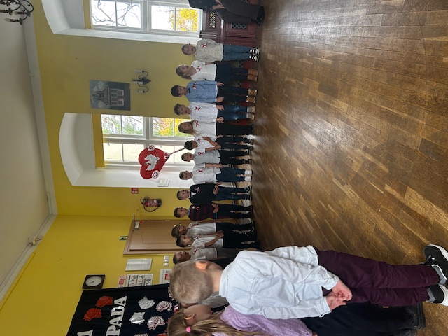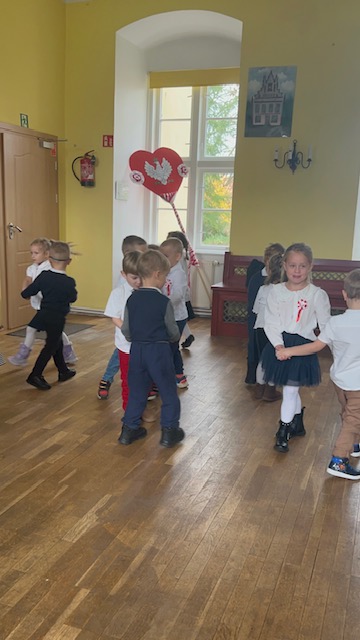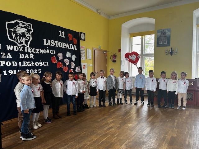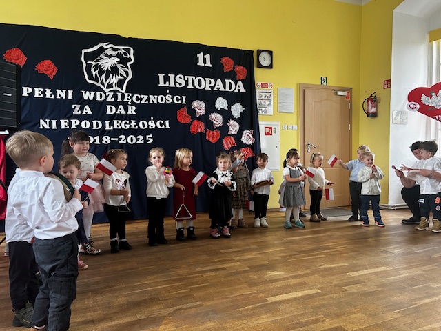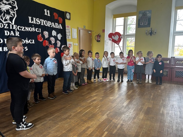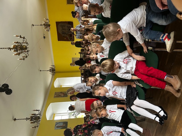 W dniu 12.11.2025 r. wszystkie dzieci z Przedszkola przy ulicy Długiej wybrały się pod opieką swoich Pań do Pałacu Książęcego w Trzebiatowie, aby tam uczcić ten wielki dla wszystkich Polaków dzień, razem z zespołem Aramis z Trzebiatowa.