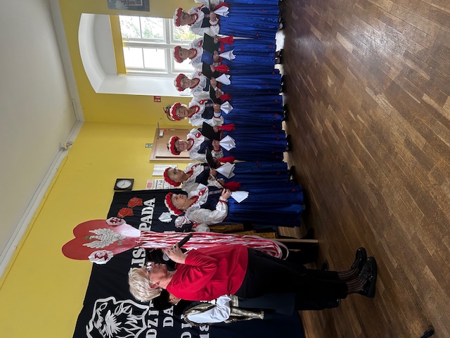 Zespół Aramis zaprezentował dzieciom piękne, klasyczne pieśni niepodległościowe, a także tańce ludowe, co pozwoliło dzieciom przybliżyć sobie naszą kulutrę i tradycję.