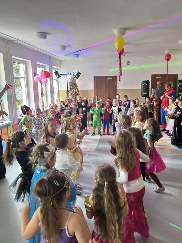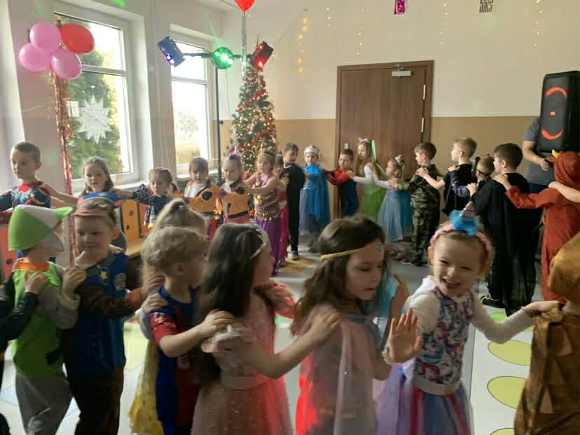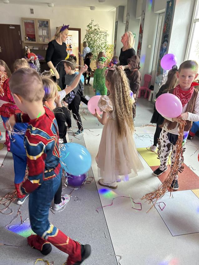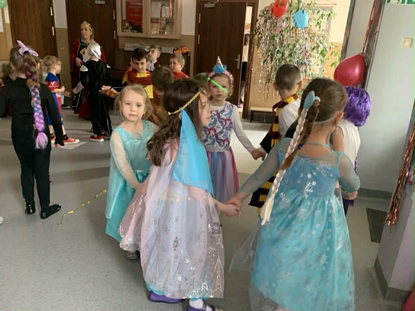 Bal Karnawałowy w przedszkolu to wyjątkowe i radosne wydarzenie, na które dzieci czekają z ogromnym podekscytowaniem. 20.02. W przedszkolu przy ul. Waryńskiego 7 nastał karnawałowy nastrój. Hol przedszkolny został pięknie udekorowany, tworząc bajkową, niepowtarzalną atmosferę. Wesoła muzyka i kolorowe światła zachęcały wszystkich do wspólnej zabawy już od pierwszych chwil. Przedszkolaki pojawiły się w niezwykłych, barwnych strojach. Wśród uczestników można było spotkać księżniczki, superbohaterów, piłkarzy, policjantów, strażaków, piratów, zwierzątka oraz postacie z ulubionych bajek. Każde dziecko z dumą prezentowało swój kostium, a uśmiechy nie schodziły z ich twarzy. Podczas balu dzieci tańczyły do znanych i lubianych piosenek, brały udział w wesołych zabawach ruchowych. Nie zabrakło wspólnych tańców w kole, naśladowania ruchów oraz krótkich przerw na odpoczynek i pyszny poczęstunek ![]()