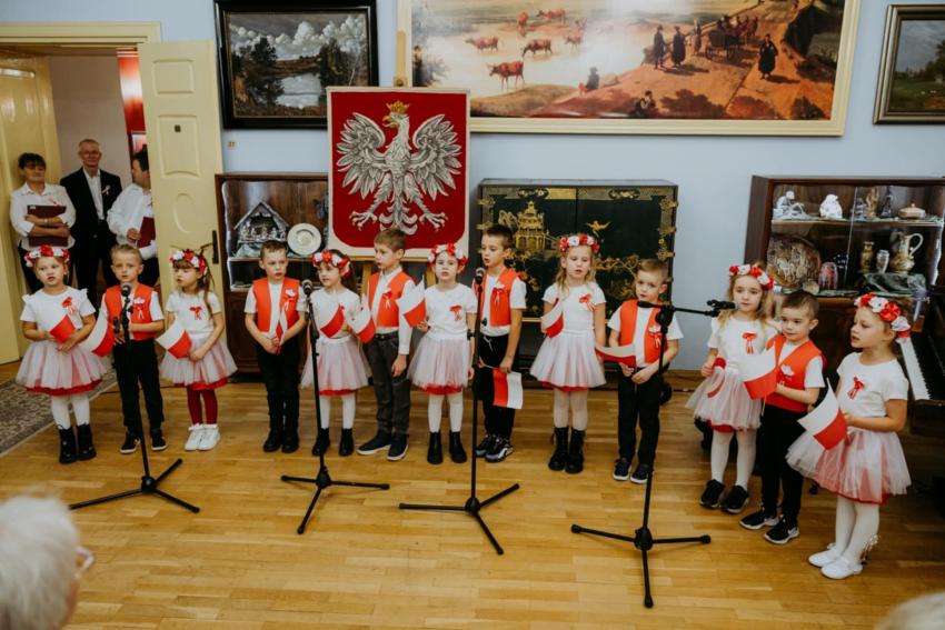 13.11.2025r. w Trzebiatowskim Ośrodku Kultury odbył się koncert poświęcony Narodowemu Świętu Niepodległości pod hasłem " Raduje się serce, raduje się dusza". Publicznośc która wypełniła salę widowiskową , mogła wysłuchać przygotowanego programu artystycznego , łączącego patriotyczny repertuar z refleksją nad drogą Polski do wolności . Na scenie wśród wielu artystów wystąpiły również dzieci z grupy Jeżyki. W ich wykonaniu zabrzmiały pieśni niepodległościowe oraz wiersze o naszej ojczyźnie . Występ przedszkolaków zakończył sie gromkimi brawami a wielu uczestnikow podkreślało , że była to piękna i wzruszająca forma wspólnego wielopokoleniowego świętowania.