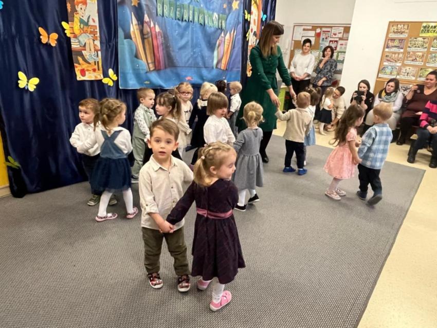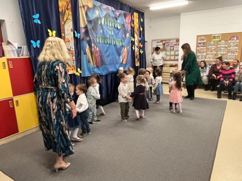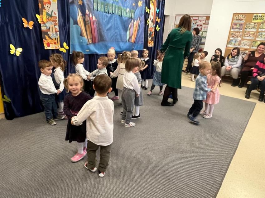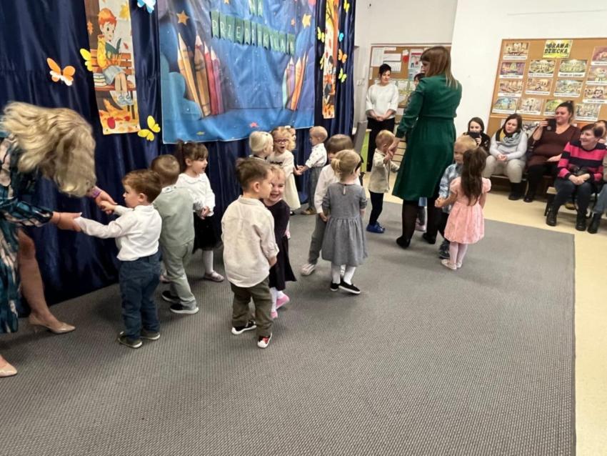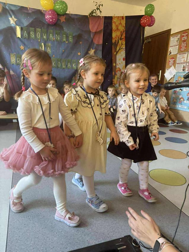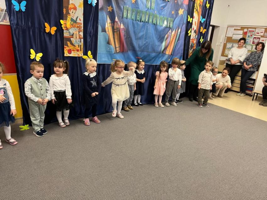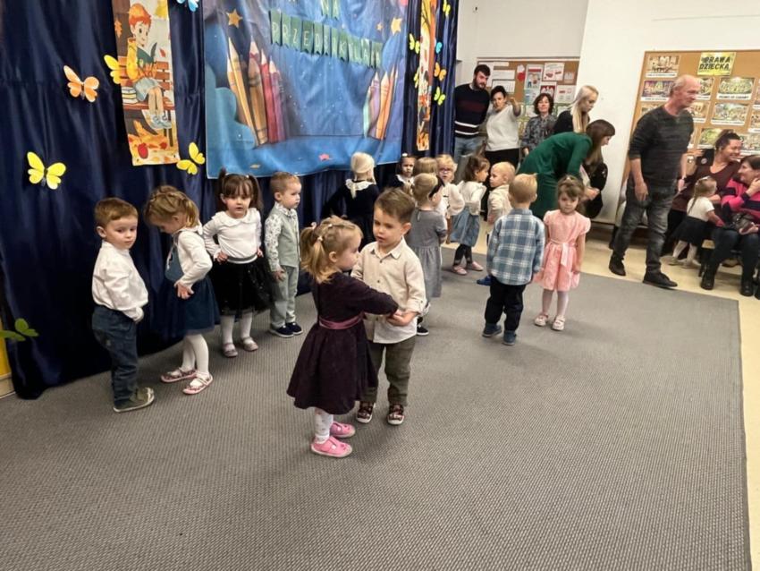 Dla naszych 3- latków była to pierwsza tak ważna uroczystość w ich edukacyjnej drodze. Z dumą patrzyliśmy, jak odważnie występowały przed publicznością, śpiewając i recytując przygotowane wiersze.