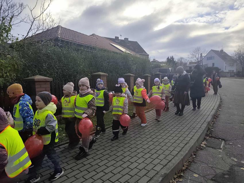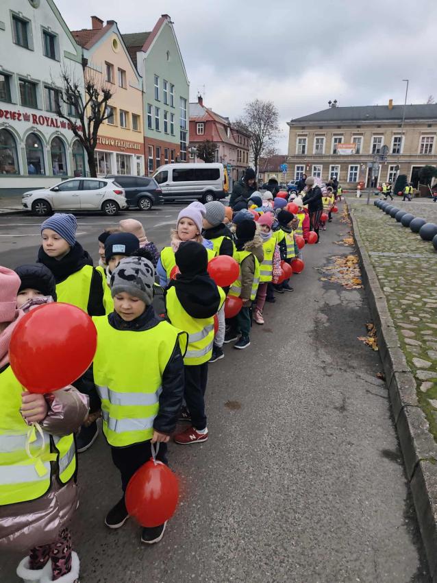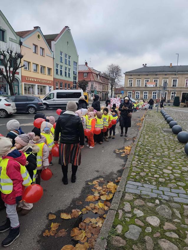 19 listopada 2025r. dzieci z naszego przedszkola wzięły udział w marszu przeciw przemocy pod hasłem „Przemoc rodzi przemoc- zerwij łańcuch”, w ramach ogólnopolskiej kampanii „Dzieciństwo bez przemocy”. W wydarzeniu wzięli udział zarówno najmłodsi mieszkańcy miasta, jak i dorośli, wspólnie manifestując sprzeciw wobec wszelkich form krzywdzenia.