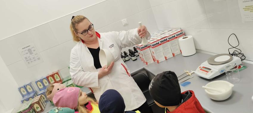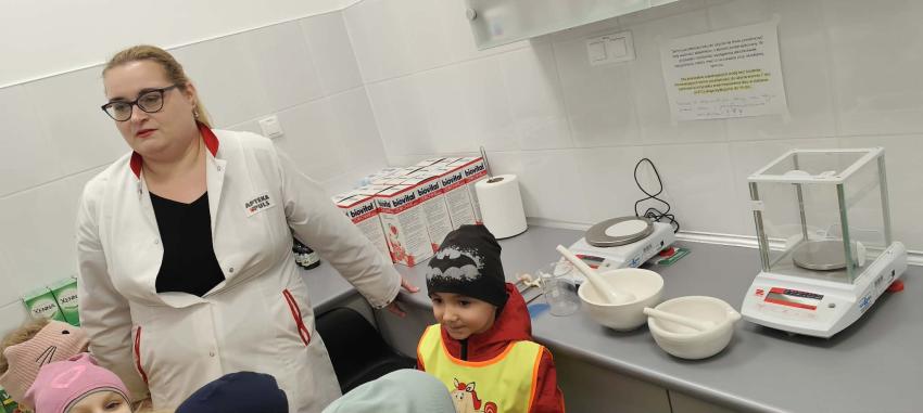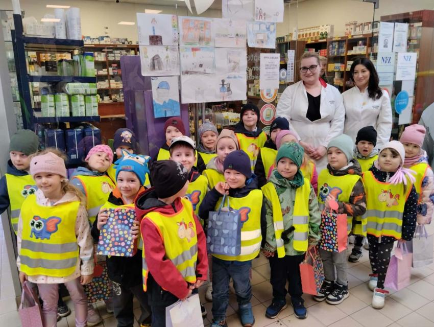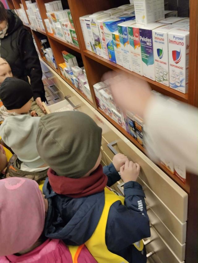 Grupa "Sówki" w ostatnim czasie przeprowadziła bardzo ciekawe zajęcia związane ze świadomością zawodową. Panie zaprosiły do grupy Panią kosmetolog, która w interesujący sposób pokazała dzieciom nieznany im dotychczas zawód. Dzieci wybrały się również na spotkanie z Paniami farmaceutkami w aptece, aby móc doświadczać osobiście miejsca wykonywania tego zawodu.