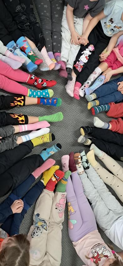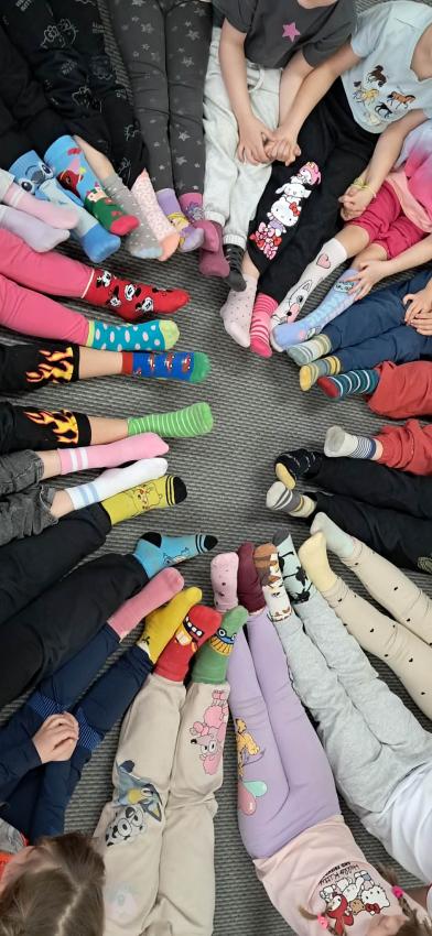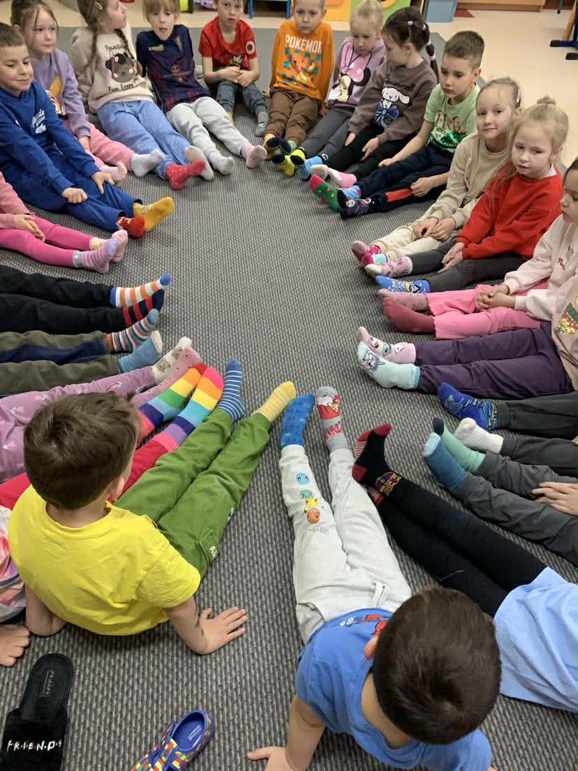 21 marca to wyjątkowa data – Światowy Dzień Osób z Zespołem Downa. Tego dnia ludzie na całym świecie zakładają kolorowe skarpetki, by symbolicznie wyrazić solidarność z osobami z trisomią 21. To święto różnorodności, akceptacji i edukacji społecznej. Data 21 marca nie jest przypadkowa – nawiązuje do dodatkowego, trzeciego chromosomu w 21. parze, który powoduje zespół Downa. Kolorowe skarpetki stały się globalnym symbolem tego dnia. Ich różnorodne wzory i odcienie podkreślają, że każdy z nas jest wyjątkowy. W tym roku obchody tego dnia przypadły na piątek 20 marca. W przedszkolnych grupach odbyły się przeróżne zabawy integracyjne, zajęcia edukacyjne wyjaśniające znaczenia święta oraz zabawy plastyczne. O 9:00 wszystkie grupy z przedszkola przy ul. Waryńskiego wybrały się na stadion, aby wziąć udział w III Biegu Kolorowych Skarpetek. Na stadionie na dzieci czekało wiele atrakcji, natomiast główną był bieg w poszczególnych kategoriach oczywiscie w KOLOROWYCH SKARPETKACH. Przedszkolaki z zaangażowaniem wzięły udział w biegu, a koledzy i koleżanki z najmłodszych grup gorąco im kibicowały. Wszyscy uczestnicy biegu otrzymali pamiątkowe medale. Z pewnością udział w tego rodzaju inicjatywach zwiększa świadomości na temat życia osób z Zespołem Downa. Przyczynia się do promowania integracji, solidarności z osobami z Trisomią 21 oraz walką z dyskryminacją osób niepełnosprawnych.