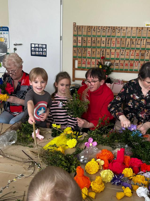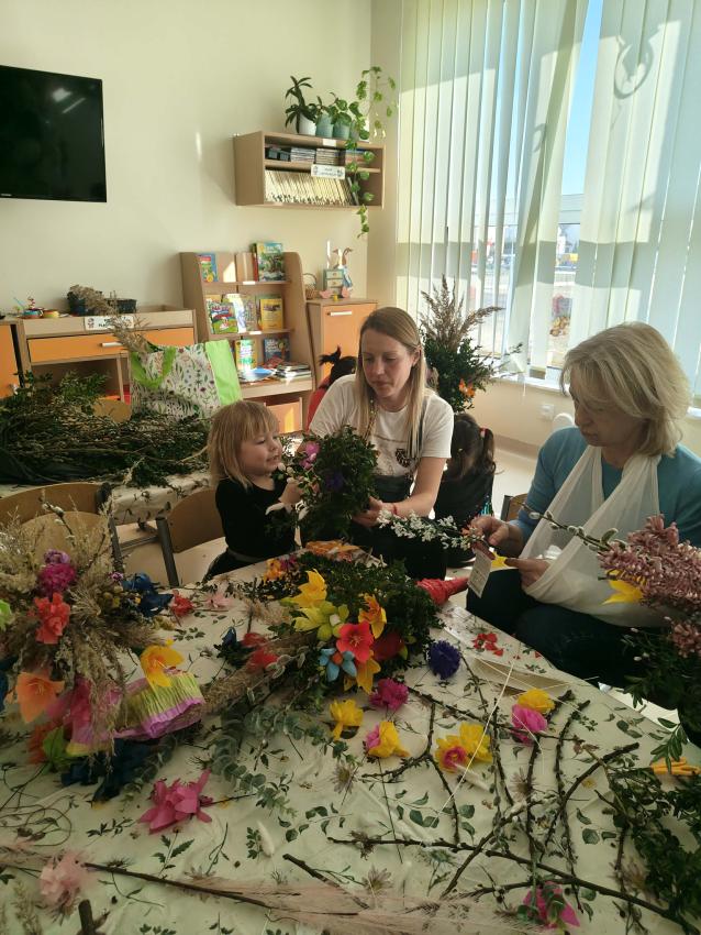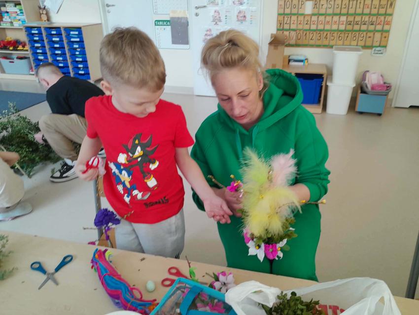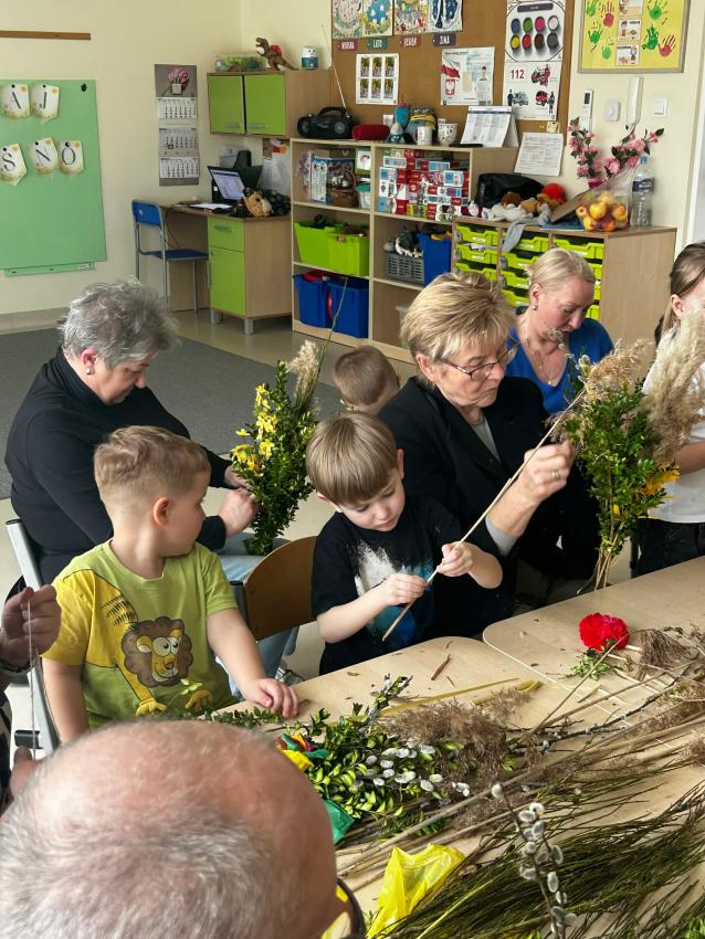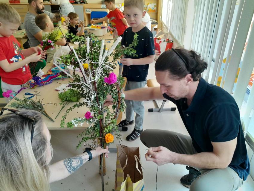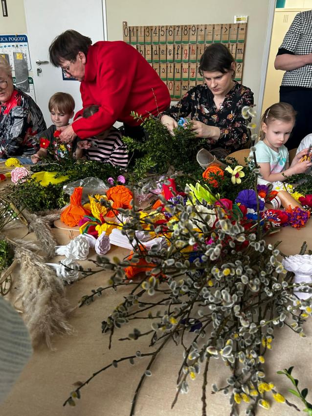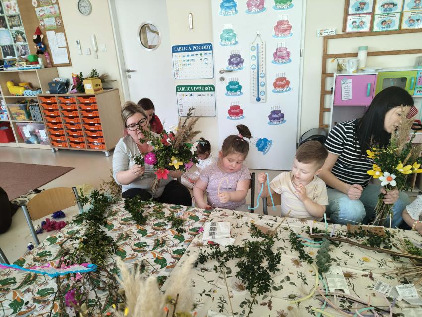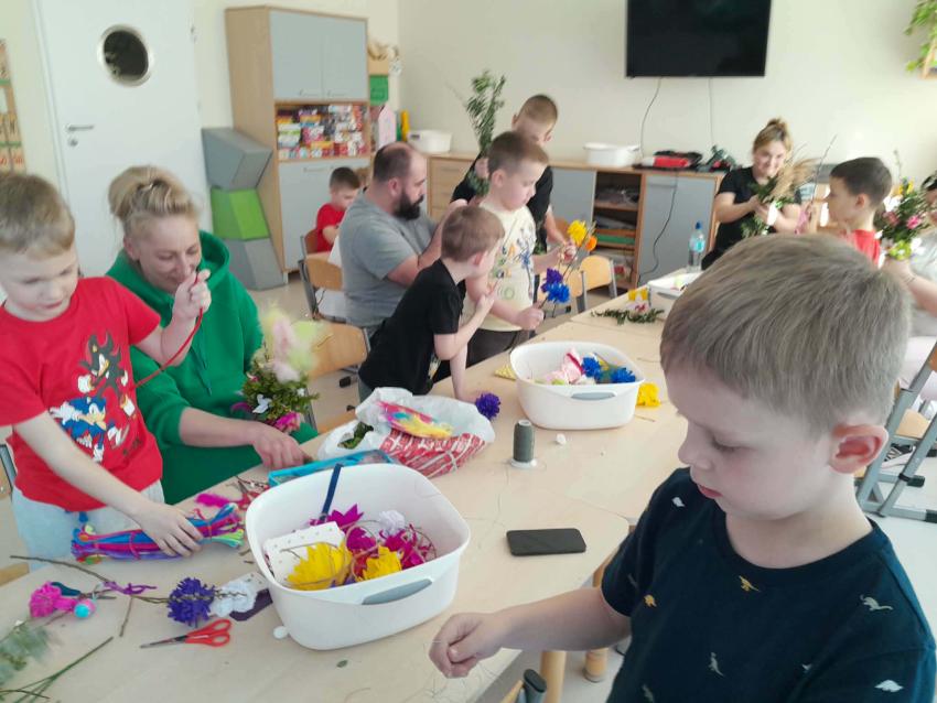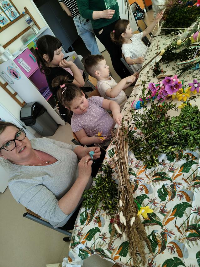 Podczas zajęć przedszkolaki miały okazję własnoręcznie przygotować ozdoby wielkanocne w towarzystwie rodziców oraz dziadków, którzy jak zwykle zaskoczyli nas swoją kreatywnością. W przedszkolu powstały piękne palmy, małe i duże, cudowne mazurki. Nie zabrakło również wspólnych, wielkanocnych zabaw.
